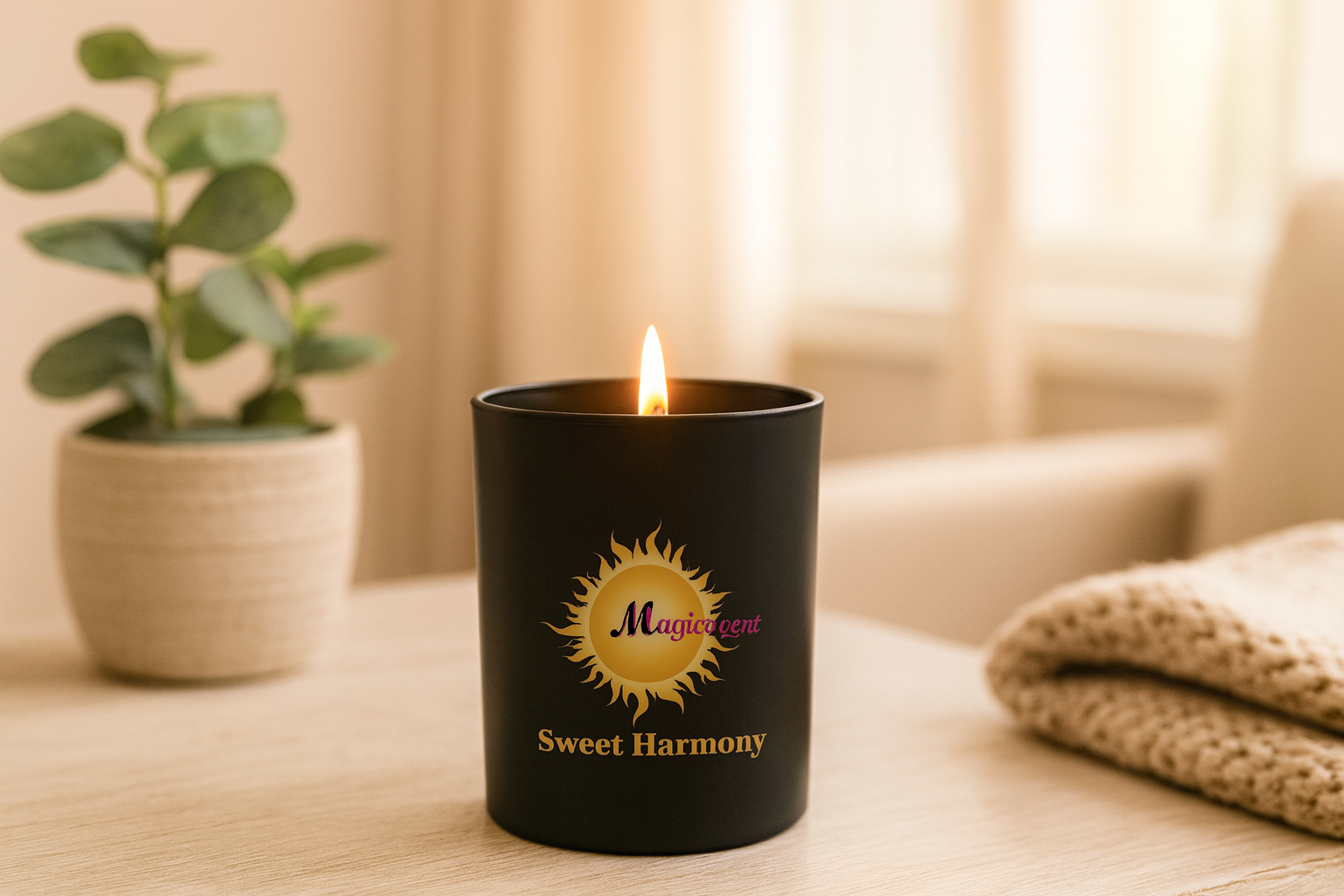 MagicScent Sweet Harmony is een luxe geurkaars met een zachte, verfijnde uitstraling die direct warmte toevoegt aan elke ruimte. De zoete geur omhult het interieur met een elegante, geruststellende aroma-mix die zowel uitnodigend als premium aanvoelt. Dankzij het matte zwarte design met subtiele gouden accenten past de kaars moeiteloos in moderne en stijlvolle woonomgevingen.